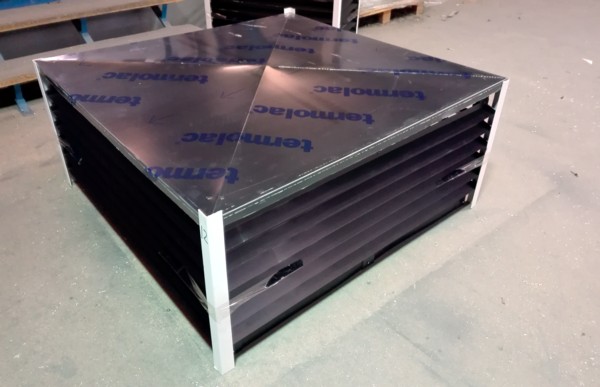 Finalmente se coloca la tapa a cuatro a aguas con su película de plástico protector para evitar posibles arañazos durante el transporte.