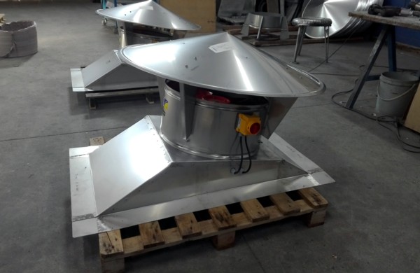 Finalmente instalamos el sombrerete deflector anti-lluvia y los grupos de aspiración dinámica están listos para ser enviados a nuestro cliente.