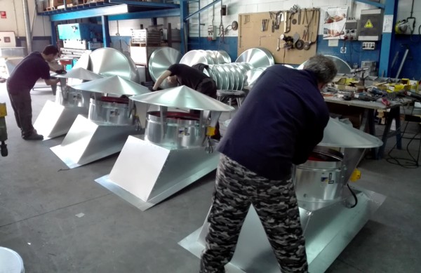 Se acerca el verano y eso supone supone la necesidad inmediata de adquirir sistemas de ventilación para afrontar el calor que se acumula en las naves durante los consiguientes meses. Una empresa de mecanizados, necesitan ventilar la nave de producción. Precisan de forma inmediata bajar la temperatura, renovar el aire y evitar la acumulación del calor bajo cubierta. Para ello nos encargan la fabricación de cuatro unidades de extractores dinámicos para instalación en cubierta modelo ATOSDIN-710-6T.