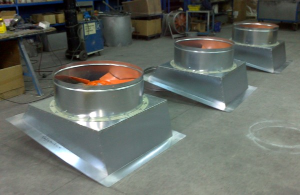 Las bases de sujeción a cubierta son fabricadas a la medida del tejado de nuestro cliente, tanto la inclinación como la distancia entre correas. Los extractores dinámicos para los modelos superiores al 710, se montan en las bases mediante conjuntos Aro/Brida atornillados con 16 tornillos, doble arandela y tuerca autoblocante, maximizando la seguridad en la instalación y evitando vibraciones, usuales en motores de esta envergadura.