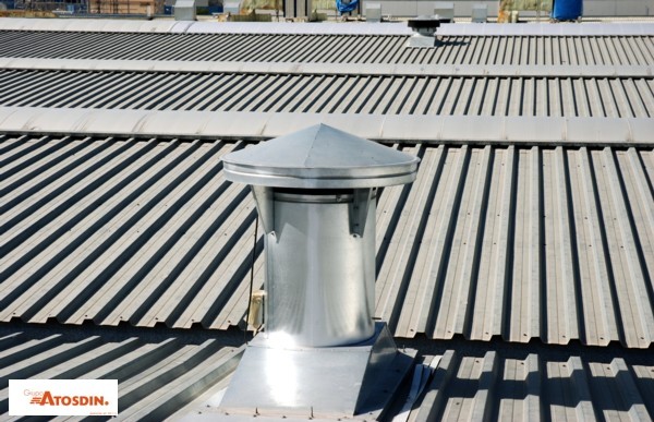 Instalación en tejado de nave industrial de grupo de aspiración dinámica y grupo de impulsión dinámica con bases de sujeción a medida, extractores/impulsores trifasicos y registros de cierre motorizados.