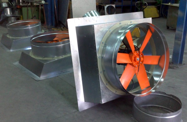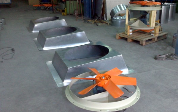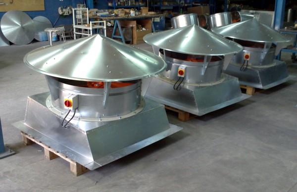 Para solventar los problemas por el calor acumulado bajo cubierta, en una pequeña fábrica de inyección de plásticos, donde el verano pasado tuvieron un incidente por estrés térmico, que ocasiono el desmayo de un operario, nos encargan la fabricación de tres grupos de aspiración dinámica de gran caudal, modelo ATOSDIN-900-4/8T-5,5 con dos potencias de extracción, base de sujeción a cubierta y conmutador de seguridad paro-marcha.
