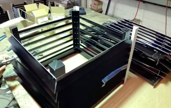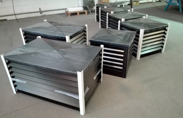 Finalmente montamos la tapa superior a cuatro aguas con inclinación de 5º. Una vez finalizadas todas las unidades las embalamos con sus correspondientes cantoneras y plasticos protectores y las enviamos a su destino cumpliendo con el plazo de entrega acordado con nuestro cliente.