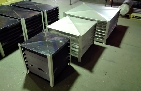 Una vez fabricados y verificadas las medidas, los sombreretes son embalados con plástico de doble hoja, etiquetados y enviados a nuestro cliente que simplemente con tacos y tornillos instalara los remates en cada una de las correspondientes chimeneas.