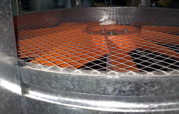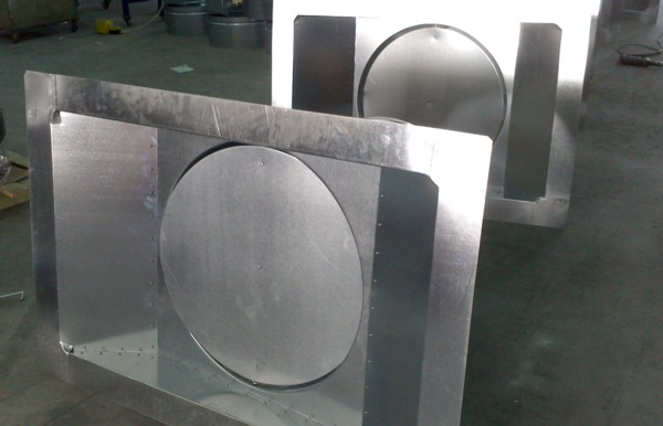 A continuación y ya en la nave de montaje, soldamos los cuellos donde posteriormente se instalarán los extractores con sus correspondientes soportes de sujeción y se acoplarán los registros de cierre motorizado. El diámetro del cuello es de 750 mm.