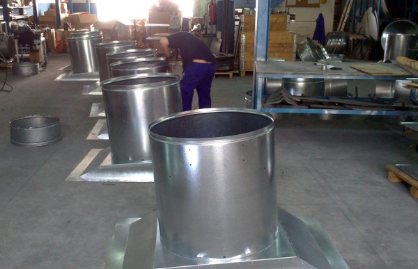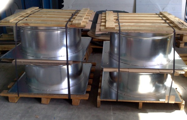 Los grupos de extracción con sus correspondientes tapa-aguas antirebocante con cono inverso inferior para evitar perdidas de carga y listos para su verificación por nuestro departamento de calidad.