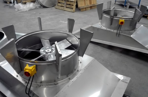 Nos solicitan para una nave industrial la fabricación de dos grupos modelo ATOSDIN-800-6T-2 con mitra de sujeción a cubierta fabricada a medida en acero inoxidable AISI-316 con interruptor de seguridad paro-marcha.