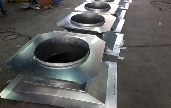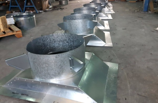 El material en este caso es acero galvanizado de 1 mm. de espesor, pero se pueden fabricar en acero inoxidable tanto en AISI 304 como en 316. En caso de que por cambio en la producción de la nave, instalación de alguna maquinaria que precise mas potencia de extracción o cualquier motivo que requiera el aumento de la ventilación, se podrá resolver fácilmente convirtiendo los grupos estáticos en mixtos estático-dinámicos, ya que los cuellos están preparados para la posible instalación posterior de extractores dinámicos hasta una potencia de 16.500 m3 a la hora.
