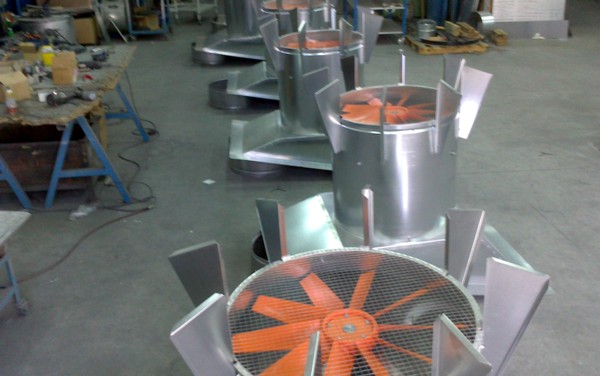 Después de que nuestro departamento de calidad, verifique el funcionamiento y consumo de las unidades, procedemos a la instalación del tapa-aguas anti-regolfante con cono inverso inferior, para evitar perdidas de carga. Los extractores de cubierta están listos para su envió a nuestro cliente.