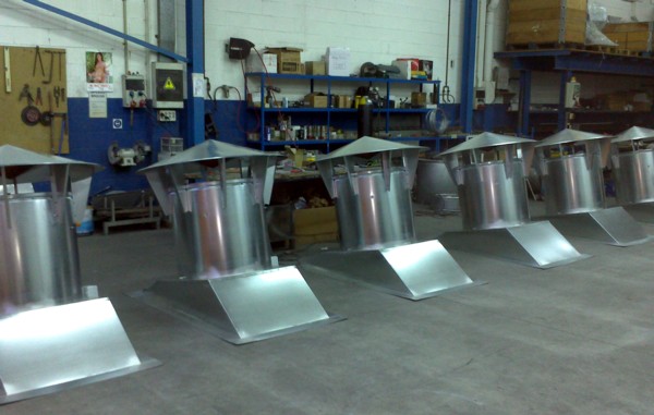 Para la ventilación y renovación del aire de una nave dedicada a las artes gráficas, evitando bajo cubierta la acumulación de los vapores, olores y aires viciados producidos por las tintas y demás productos utilizados, un cliente de la provincia de Toledo nos encarga la fabricación de seis extractores dinámicos de cubierta modelo ATOSDIN-710 con registros de cierre motorizados para evitar perdidas de calefacción en invierno y rejillas anti-pájaros.