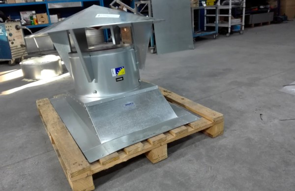 Finalmente instalamos el sombrerete deflector anti llúvia con cono inverso interior para evitar perdidas de presión. El equipo se fija en un palet para facilitar su transporte y lo enviamos a nuestro cliente cumpliendo con el plazo de entrega acordado.