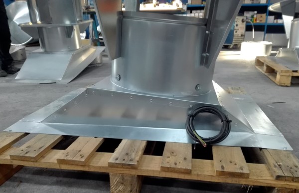 Fabricamos la base de sujeción a cubierta a medida del tejado y el cuello donde se instalará el extractor dinámico. El equipo irá provisto de un proceso de conexión de cable para que el cliente no tenga que manipular el el motor y tenga una garantia total en caso de fallos.